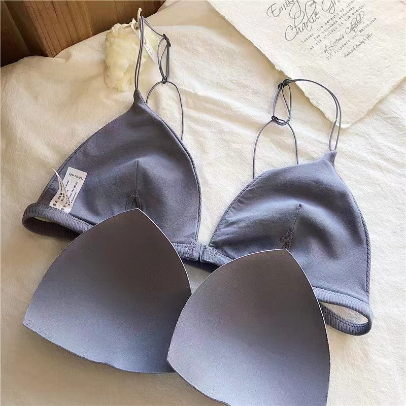 Double Strings V Cup Light Padded Back Hooks Bikini Bra