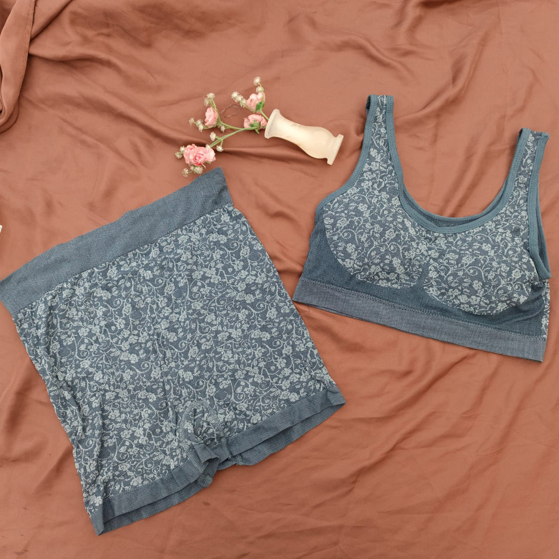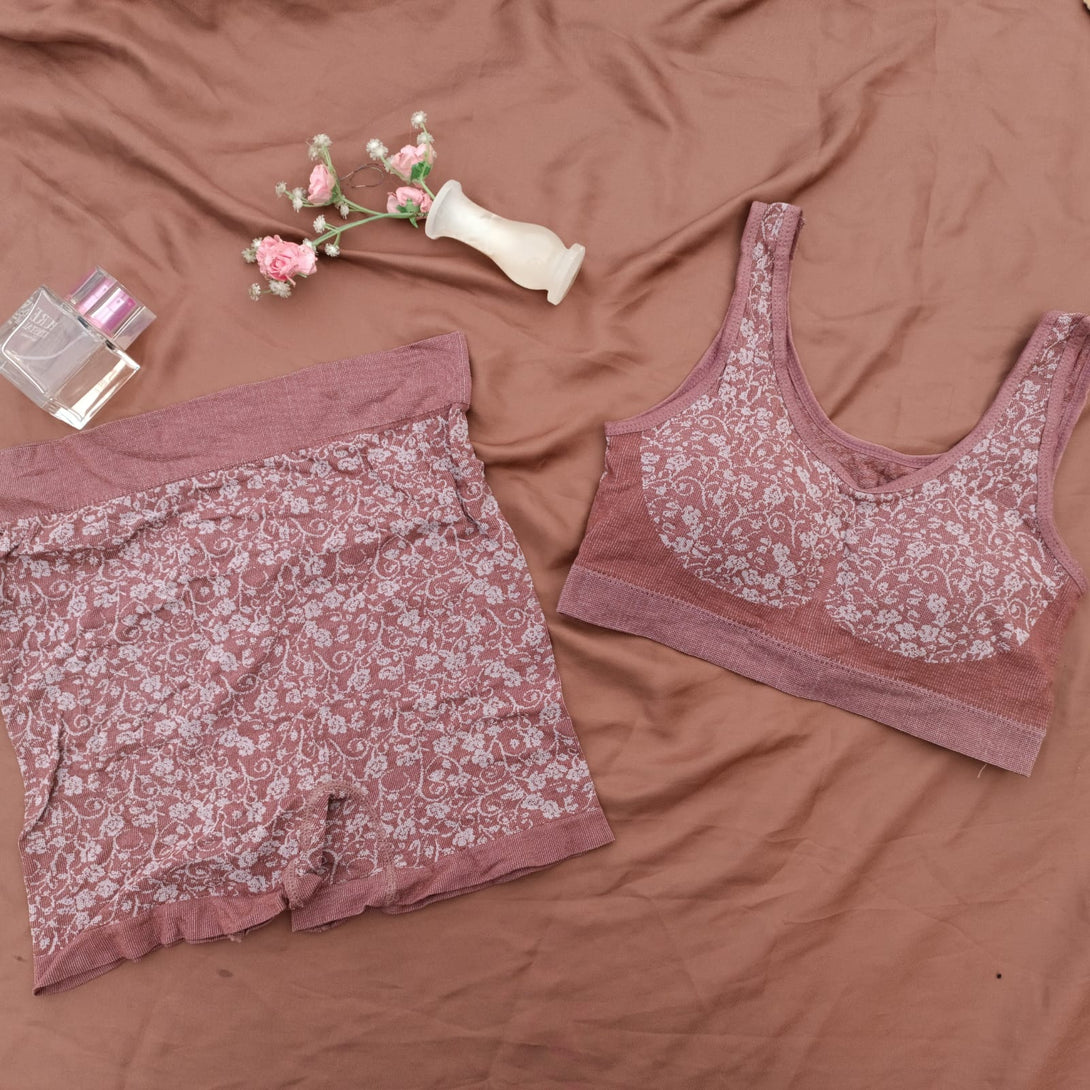 Floral Print Sports / Daily Wear Padded Bra with Shorts