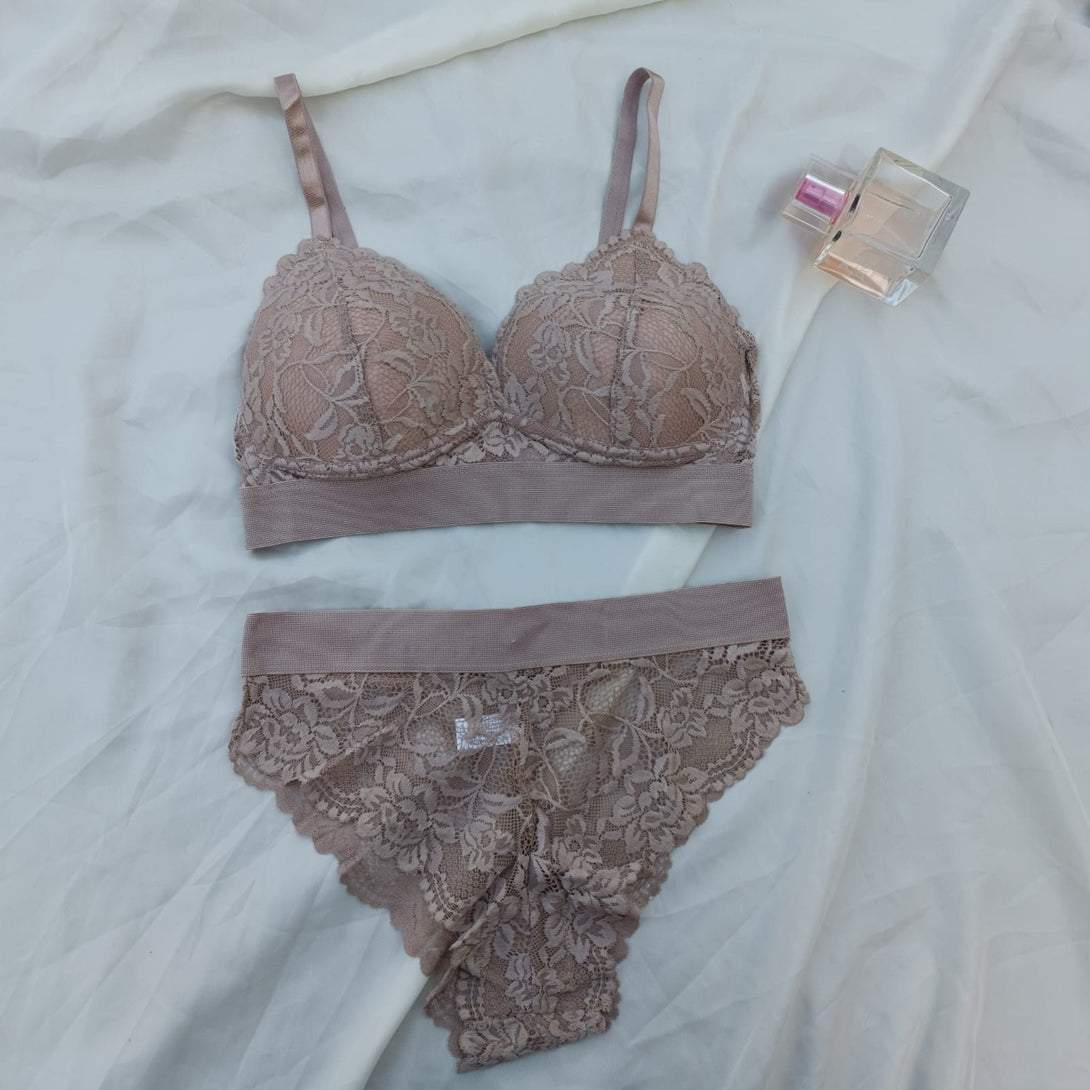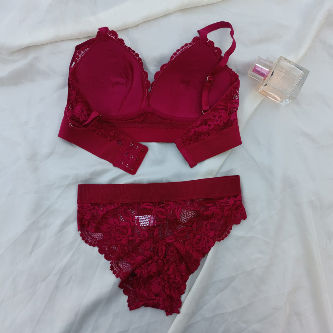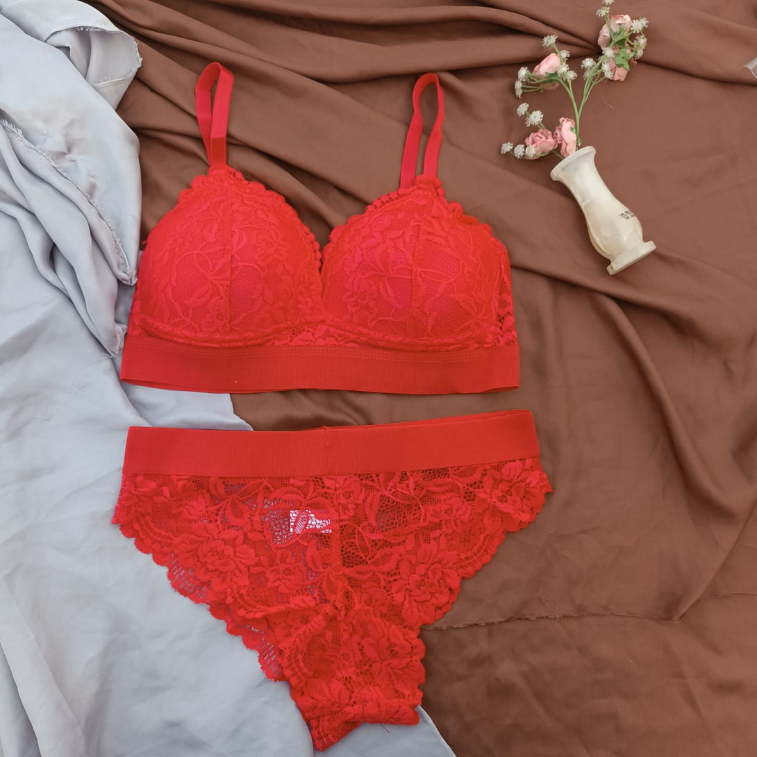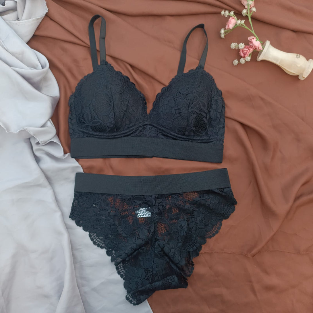 Floral Elastic Band Light Padded Bra Set