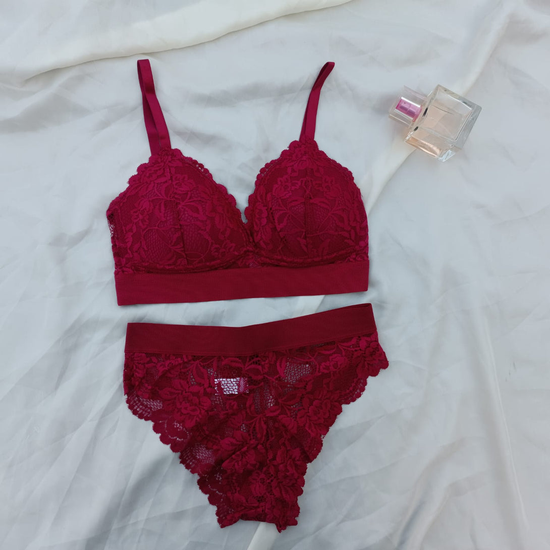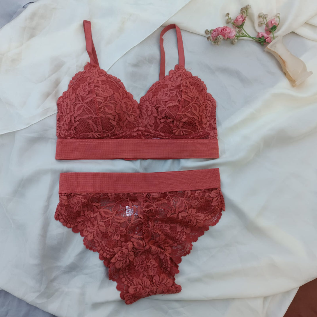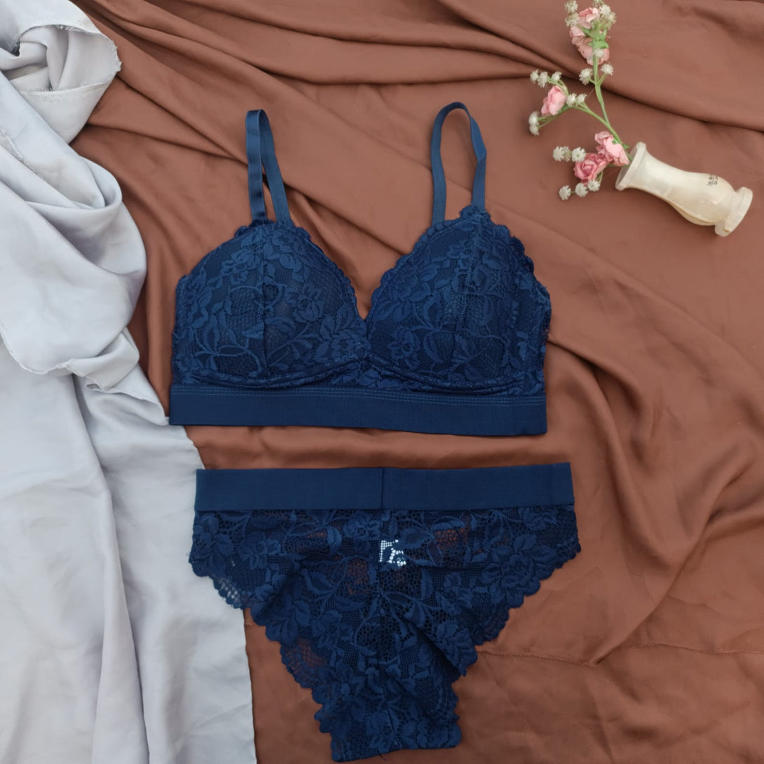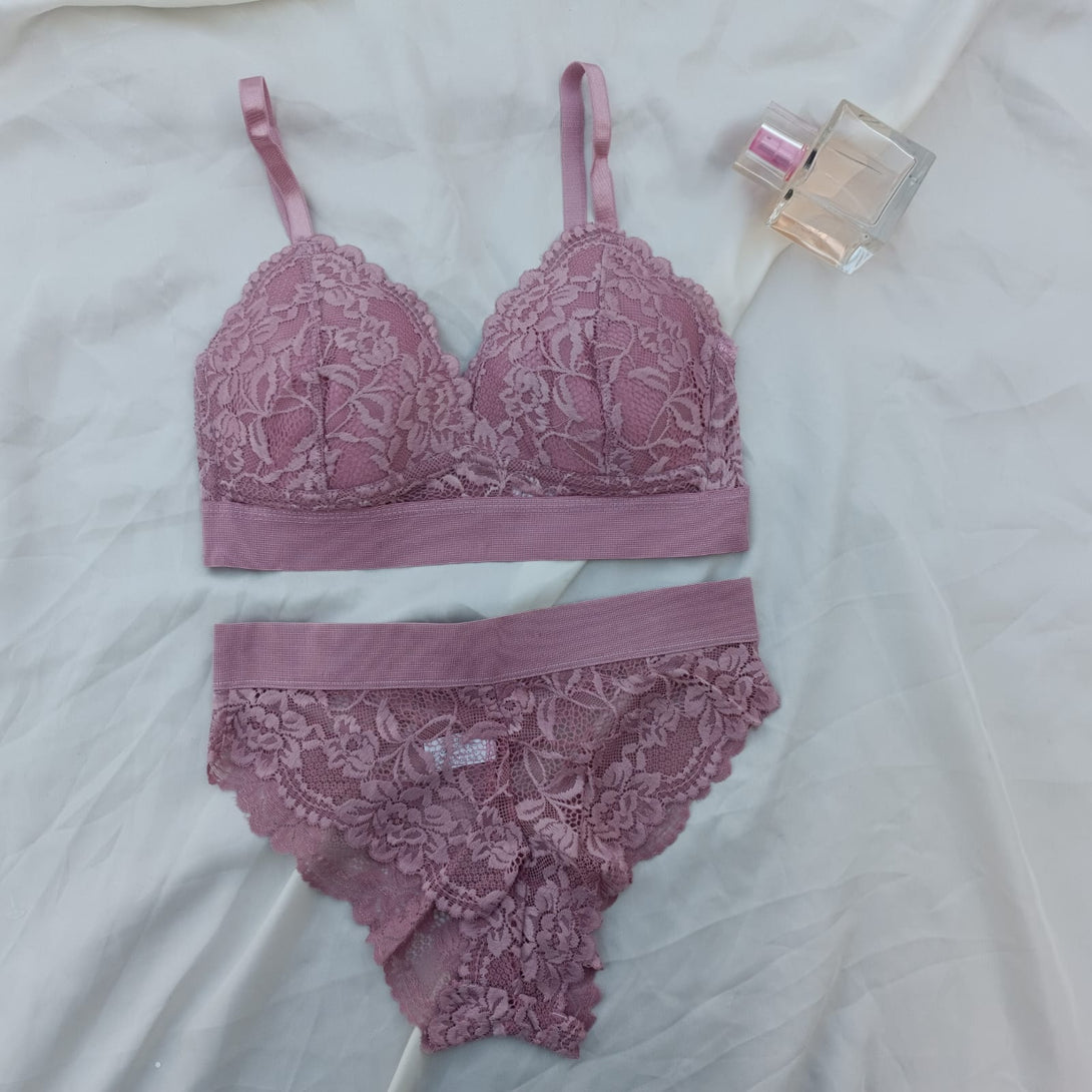 Floral Elastic Band Light Padded Bra Set