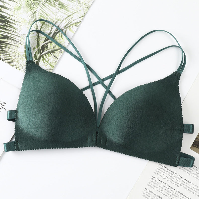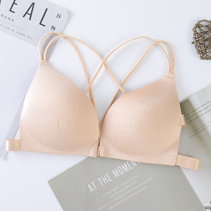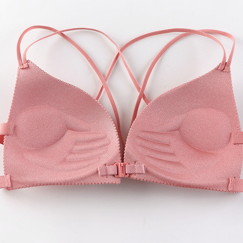 Front Open Hand Shaped Light Padded Strings Bra