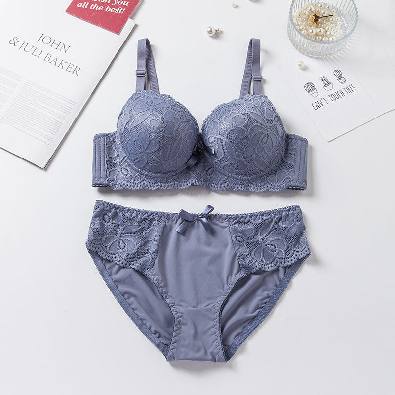 Lace Wired Flower Design Medium Padded Bra & Panty Set