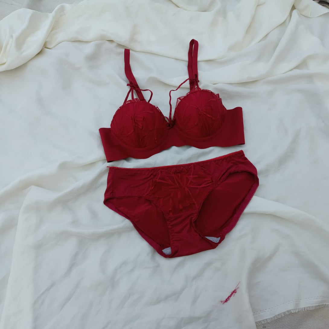 Multi Strips Soft Double Padded Bridal Bra & Panty Set