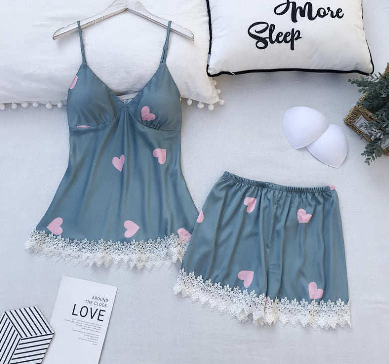 Non Padded Big Heart Design Silky Short Shirt & Shorts (A098)