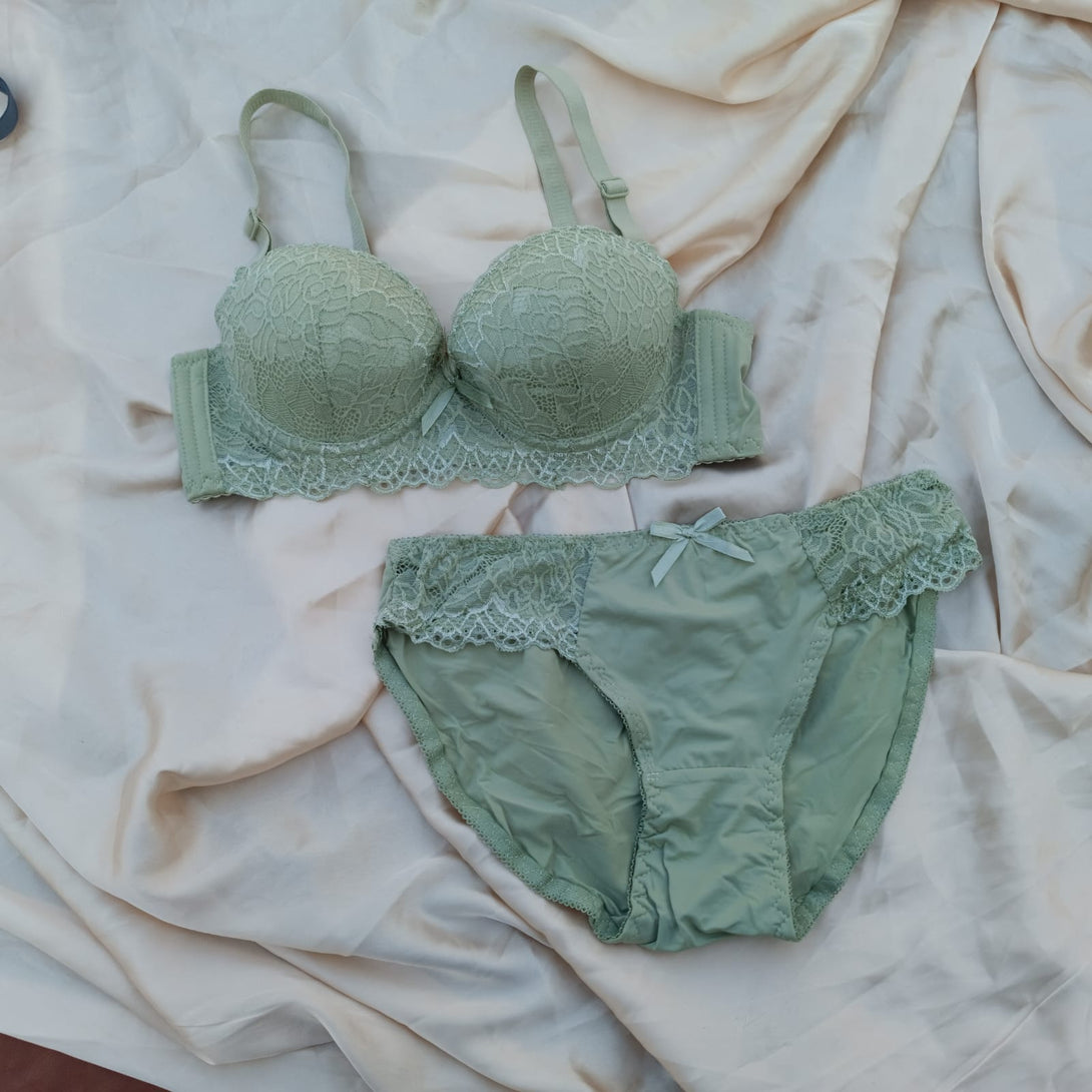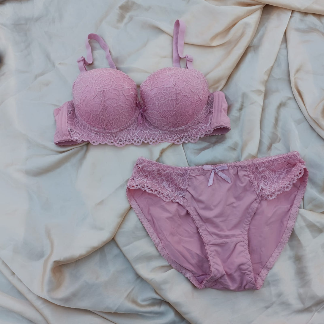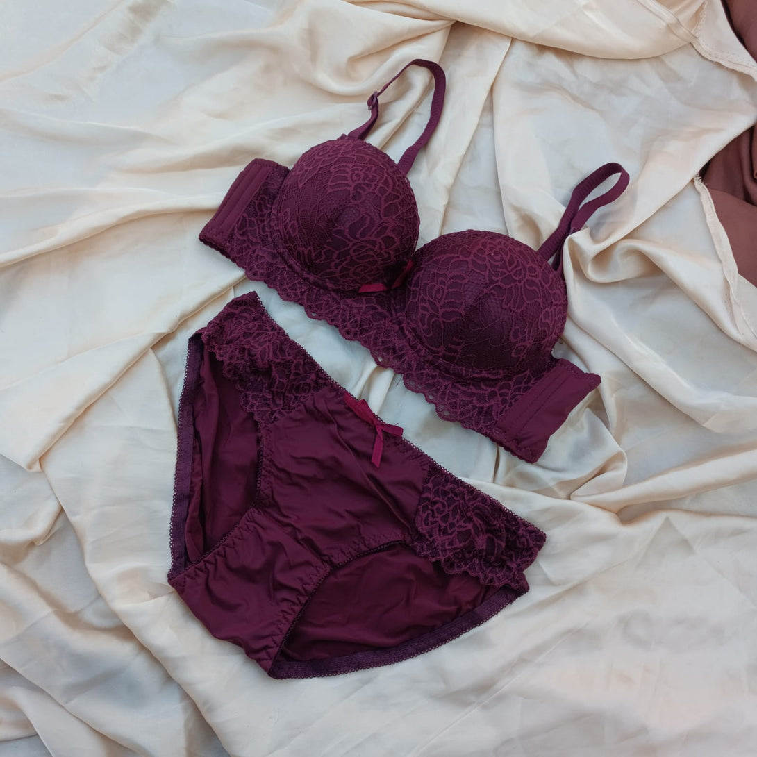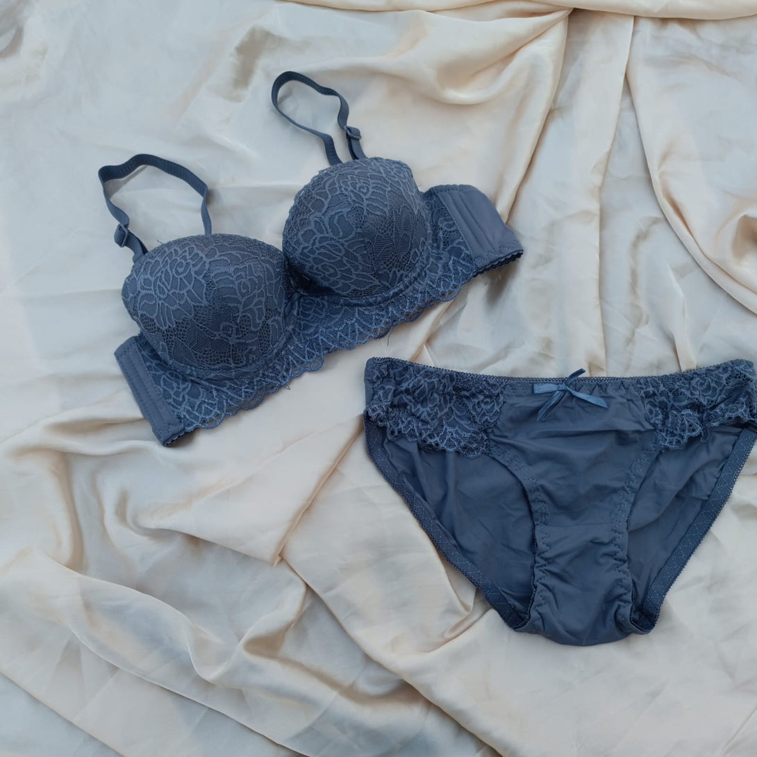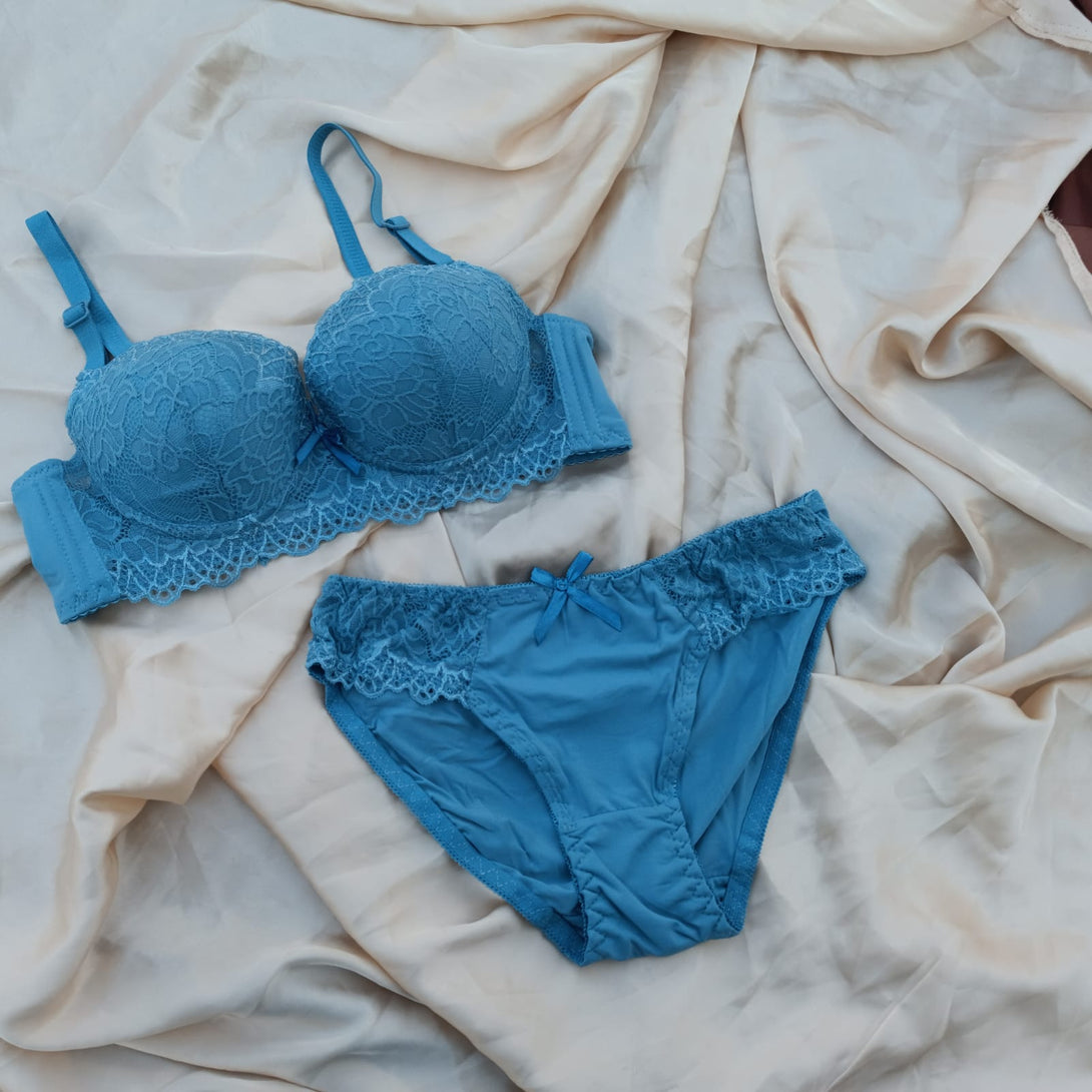 Bridal Lace Wired Medium Padded Pushup Bra Set