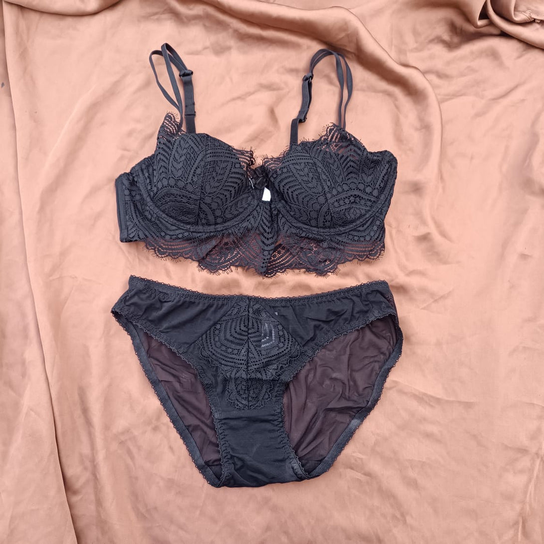 Very Thin Padded Half Cup Pushup Wired Net Bra & Panty Set